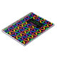 Diseño geométrico abstracto de círculos interrelacionados, colores arcoiris brillantes sobre fondo negro