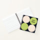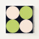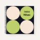 Un portátil elegante, con una espiral, con un diseño de círculos modernos de mediados de siglo en la cubierta. Los círculos son de color rosa y verde sobre un fondo azul-negro, lo que da un aspecto audaz y sencillo. Personalice con el nombre del destinatario para el toque final.