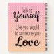 Un imán saludable lindo con la cita: "Háblate como tú a alguien que amas" Afirmación positiva y autohabla para amarte más. Fondo naranja rosado y melocotón con puntos de polka blanca, femenina y femenina.
