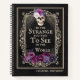 Cita Graciosa De Floral Gótica Cita Nombre Personalizado Bloc De Notas. Nombre personalizado libro de boceto gótico con el cráneo con corona floral rodeada de bóvedas barrocas vintage borde, flor araña web y murciélagos . curiosa cita inspiradora " ser lo extraño que quieras ver en el mundo"