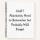 Cosas que necesito recordar, pero probablemente olvidaré, Libreta de tareas pendientes, Cita divertida para gente olvidadiza, Simple para escribir notas y planes, olvido de hacer lista de citas divertidas de cuaderno, gente olvidadiza simple, escribir notas, para hacer revistas de listas, regalo para gente olvidadiza, comillas graciosas sobre envejecer, cosas que necesito bajar notas y planes, simple y elegante, humor, distraído y descortés amigo, cosas que recordar, azul verde azulado pastel,