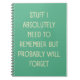 Un bloc de notas simple en línea para notas, para hacer listas, y más con una graciosa cita de portada - Cosas que necesito recordar, pero que probablemente olvidaré.