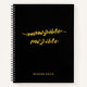 Cuaderno personalizado con cita inspiradora Impossible Possible en letra de guión dorado y fondo negro ónix.