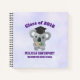 Cuaderno cuadrado en espiral que dice clase 20xx, personalizar con el año de graduación, un nombre personal y escuela. Diseñado con un fondo violeta claro. Ilustrado con un lindo oso koala con un gorro negro de graduación comiendo algunas hojas de eucalipto.