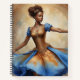 Una bailarina de ballet steampunk con un traje de cobre y azul que combina la elegancia y la innovación tecnológica.