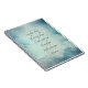bloc de notas/notepad de estilo vintage en azul y blanco con poema original en guión elegante / letras: Bajo los cielos de azul turbio, la nube llevaba siempre los pensamientos a la deriva.
