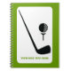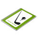 Club de golf y bolas negro, verde portátil personalizado que muestra un icono minimalista de un club de golf negro y bola y tu texto sobre fondo blanco con borde verde.