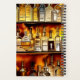 Un portátil divertido para seguir el rastro de todas tus recetas de cócteles favoritas incluye una representación artística de botellas de licor y licores dispuestas en las estanterías para el bar trasero de un establecimiento. acuarela digital creada con software de generación de IA. marco de texto central de personalizable