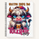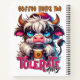 A funny, sarcastic, and colorful design showcases an adorable highland cow clutching a takeout coffee cup. The cup features a coffee bean and a black lid. The cow, with its big blue eyes and black-and-white fur, adds charm to the design. The vibrant text reads, "Coffee helps me tolerate idiots." This design is available on various products, making it a perfect gift for coffee lovers.