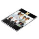 Crea tu propio collage de fotos único. Utiliza cuatro, 4 de tus propias fotos. Personaliza y un logotipo empresarial, nombre y texto. Fondo negro, texto blanco.