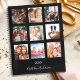Crea tu propio collage de fotos familiar único como regalo o para ti mismo. Utiliza cuatro o 9 de tus fotos favoritas de tu familia, amigos, destino de viaje soñado o mascota. Personaliza y agrega un nombre y un año. El nombre se escribe con una tipografía moderna de letra manuscrita. Un fondo negro moderno, texto blanco.
