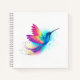 Colibrí luminoso, irrisorio, exótico volador sobre fondo blanco, pintado con pintura multicolor, acuarela. Colibrí arcoiris.