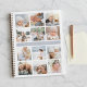Personalizar este bloc de notas en espiral con doce fotos cuadradas dispuestas en un diseño de collage de rejilla, con tu nombre, nombre de negocio o elección de personalización mostrada en una franja gris de niebla corriendo por el centro. La cubierta posterior tiene un tono de franjas de tono en tonos grises.