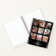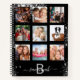 Haz tu propio collage de fotos de familia como regalo o para ti mismo. ¡Usa cuatro, nueve de tus fotos favoritas de tu familia, amigos, destino de viaje de ensueño o mascota! Personalice y agregue un nombre y su letra de monograma. El nombre está escrito con un guión moderno de estilo con letras a mano con toques. Un fondo negro clásico, decorado con un polvo falso purpurina plateado. Para que los cambios sólo eliminen el nombre del ejemplo, deje los espacios o la emoji delante y después del nombre. Utilícelo como diario, diario, para tomar notas, para la escuela, el trabajo o la oficina en casa.