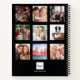 Crea un collage de fotos familiar único como regalo o para ti mismo. ¡Utiliza cuatro o 9 de tus fotos favoritas de tu familia, amigos, destino de viaje soñado o mascota! Personaliza y agrega un nombre y un año. El nombre se escribe con una tipografía moderna de letra manuscrita. Un fondo negro moderno, texto blanco.