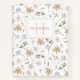 Este elegante cuaderno presenta un hermoso patrón acuático de lirios de colores vivos, flores silvestres polvorientas azules y hojas de salvia sobre un fondo blanco con un nombre y un monograma de color rosa. Esto es parte de la colección Spring Lilies.