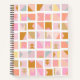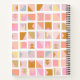 Un diseño lindo y divertido de pequeños cuadrados con una variedad de formas geométricas en bonitos colores pastel de rosa, coral y amarillo combinados con un tono dorado de ámbar.