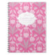 Patrón de jardín floral de acuarela rosa dibujado a mano, perfecto para un cuaderno de composición espiral femenina de coqueta personalizado con tu propio nombre. El texto es totalmente editable.