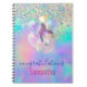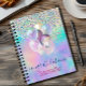 Haz que el regreso a la escuela sea divertido con este Cuaderno personalizado Lindo. Está diseñado con elegantes gotas de brillo iridiscente femenino en colores de arcoíris de unicornio rosa.