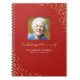 Elegante libro de notas conmemorativas de condolencias con una foto de tu ser querido, un fondo rojo que se puede cambiar a cualquier color, purpurina brillante de oro y una plantilla de texto personalizada con su nombre y fechas.