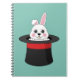 Un ilustracion de un lindo conejito blanco mirando al gorra mago negro con acento rojo. Este adorable diseño de conejo blanco es un regalo para los amantes de la magia, los magos, los amantes del conejo, la madre de piel, el padre de piel, los amantes de mascotas y los amantes de los animales.