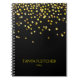 Cuaderno de confeti en negro y oro, elegante y personalizado, perfecto para el uso diario. Personaliza con tu nombre/monograma.