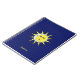 Pared de luna y sol sobre azul marino. La conjunción luna y sol simboliza el equilibrio y la armonía. El texto se puede personalizar.