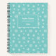 Portátil con temática invernal que presenta un moderno patrón vectorial de copos de nieve blancos sobre un fondo turquesa. Personalice este diseño festivo y temático de invierno con el nombre o el texto de su elección.