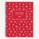 Portátil con temática invernal que presenta un patrón vectorial moderno de copos de nieve blancos sobre un fondo rojo. Personalice este diseño festivo y temático de invierno con el nombre o el texto de su elección.