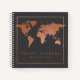 Mapa único del mundo del cobre sobre fondo gris oscuro editable con un simple borde geométrico para el aventurero amante de los viajes, amante de los viajes, que tiene montones de viajes para planear y viajes para escribir o dibujar. Nuestro diseño de mapas es elegante, profesional y un poco masculino, lo que lo hace perfecto para un novio de boda o regalos para los que caminan por el mundo con usted! Todo el texto e INCLUSO las reglas de la página dentro pueden ser personalizadas, así que es justo para lo que sea que planees usarlo. Hay más opciones de color disponibles en la tienda de diseño Zazzle de Personalizado Paper Works.