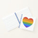 Esta obra de arte cuenta con un colorido corazón rayado de arco iris.