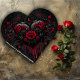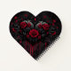 Cuaderno con forma de corazón gótico. © Dark Heart Desires. Este cuaderno gótico tiene forma de corazón y está encuadernado en espiral. Tiene un corazón negro y diseño de rosas rojas sangrantes en ambas cubiertas.