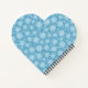 Aprovecha la maravilla del invierno con este cuaderno en forma de corazón adornado con un delicado patrón de copos de nieve azul.