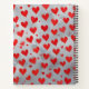 Un patrón delicado de corazones rojos pequeños sobre fondo plateado, realizado en acuarela. Un diseño que transmite ternura y romanticismo.