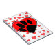 Corazón rojo, dibujos de huellas de pata de perro. Corazones de fondo. Idea de regalo para los amantes del perro.