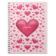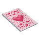 Patrón de los corazones rosados de Destei en diferentes tamaños sobre un color de fondo rosa claro. Hay un área de texto personalizable en el gran corazón en el medio.