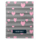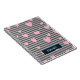 Añade tu nombre en este patrón de corazones rosados y rayas blancas y negras.