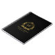 Marco de lujo dorado y elegante con corona y marco de laurel. Fondo negro personalizado