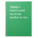 Cosas que me gustaría decirle a mi suegra: graciosa Este diseño humorístico es perfecto para anotar pensamientos, garabatos o incluso palabras no habladas a tu suegra, mezclando ingenio y encanto.