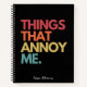 Cosas que me molestan cuaderno. Ordenador portátil simple personalizado donde puede agregar su nombre. El mejor regalo para él o ella.
