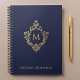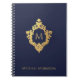 Cuaderno Crest Monograma Azul Marino Falso Oro Nombre Elega