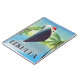 Cartel de viaje en crucero de Barbados con un transatlántico y palmeras.