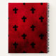 Este bloc de notas de estilo gótico presenta cruces negras sobre un fondo rojo texturado.
