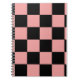¿Te gustan los cuadernos con un patrón de comprobación genial? Este cuaderno tiene un patrón de comprobación hecho con cuadrados rosados y negros.