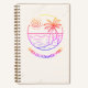 Un cuaderno beige con el logotipo de un arte lineal de una playa tropical en colores cálidos (naranja, amarillo, azul, marrón claro). El logo incluye un sol estilizado, olas del océano, una palmera y una tabla de surf. Debajo del logotipo, se escribe el texto "Vibes de verano interminables". Este cuaderno representa el verano, la playa y el espíritu vacacional con un toque tropical, con elementos como el sol, el océano, la palmera y la tabla de surf. Ideal para capturar recuerdos de verano y para disfrutar de la inacabable estética de verano.