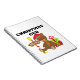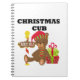 Un adorable diseño de las fiestas navideñas cuenta con un oso marrón con un gorro de Navidad, regalos envueltos de rojo y verde, y un letrero para el Polo Norte.