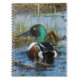 Cuaderno de Cuchara Norteña. La cabeza verde iridiscente y los ojos amarillos impresionantes junto con los negros, blancos y hermosos marrones castaños del cuerpo hacen que el macho de la cuchara norteña sea un miembro muy atractivo de la familia de los patos. El enorme pico negro en forma de "cuchara" se utiliza para filtrar los pequeños insectos y algas de las lagunas y estanques donde se alimentan.