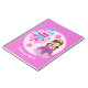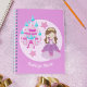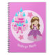 Un bonito regalo personalizado de cumpleaños de princesa que presenta a una hermosa niña con un vestido de reina con lazos rosas parada frente a un castillo rosa y azul hielo. Un regalo de fiesta personalizado lindo para una niña. Agrega el nombre de tu hijo debajo de las escaleras del castillo y deja que ella escriba cuentos de hadas en estas páginas.