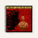 En un cuadrado hay 2 cerdos: una (estilo chino de papel negro) parece salirse con la suya con una forma cortada de papel dorado (en el interior está el segundo cerdo con el símbolo chino). Detrás de ellas, un fondo rojo formado por grandes letras decorativas y ornamentadas con las palabras: "Año del cerdo" y en la cima "Año del cerdo". Diseño en cuaderno de espiral cuadrado con fondo negro. Disponible en forma rectangular. Puede cambiar fácilmente el año (fuente, color, tamaño y posición) haciendo clic en el botón personalizar. Productos de oficina, productos para el hogar, tarjetas de felicitación, postales, productos artesanales y más. Perfecto para el Año Nuevo chino del Cerdo o cumpleaños (personas nacidas en el Año Cerdo).