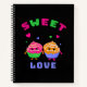 Cuidados quequitos coloridos con corazones y texto AMOR DULCE sobre fondo negro